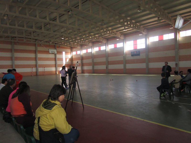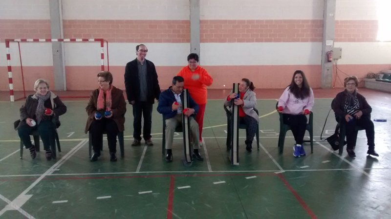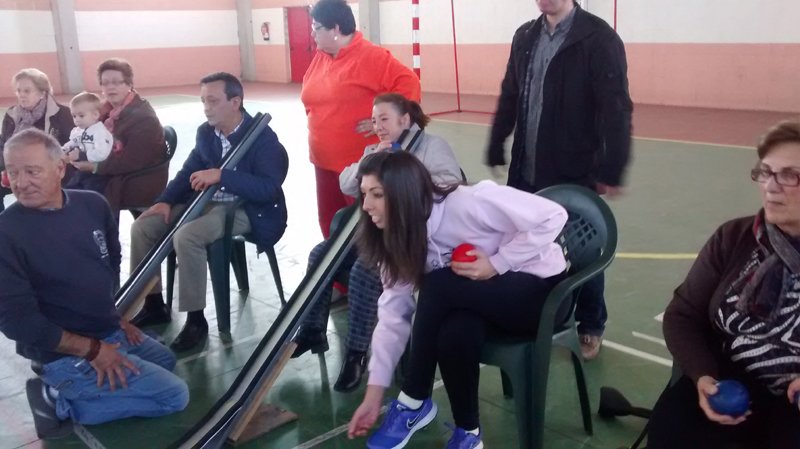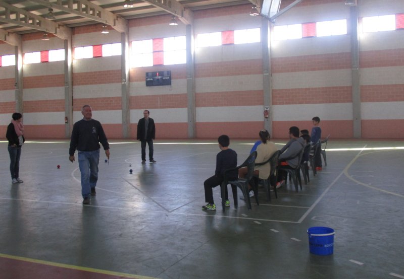 Jugamos, con los niños del C. P. San Isidro a la Boccia. Tambien hubo un grupo de adultos que se atrevieron a intentarlo. Fué simpático verlos usando las canaletas.